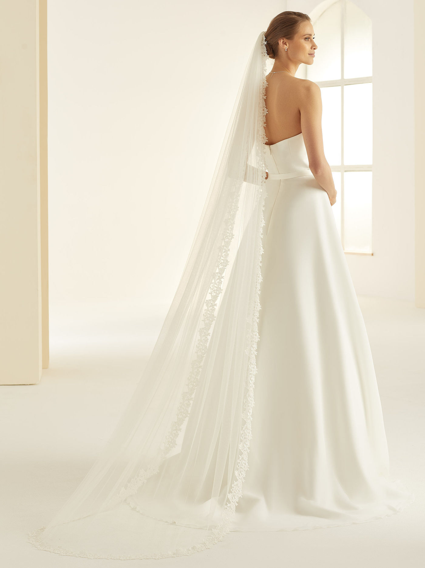 einlagiger Schleier mit Spitzenkante