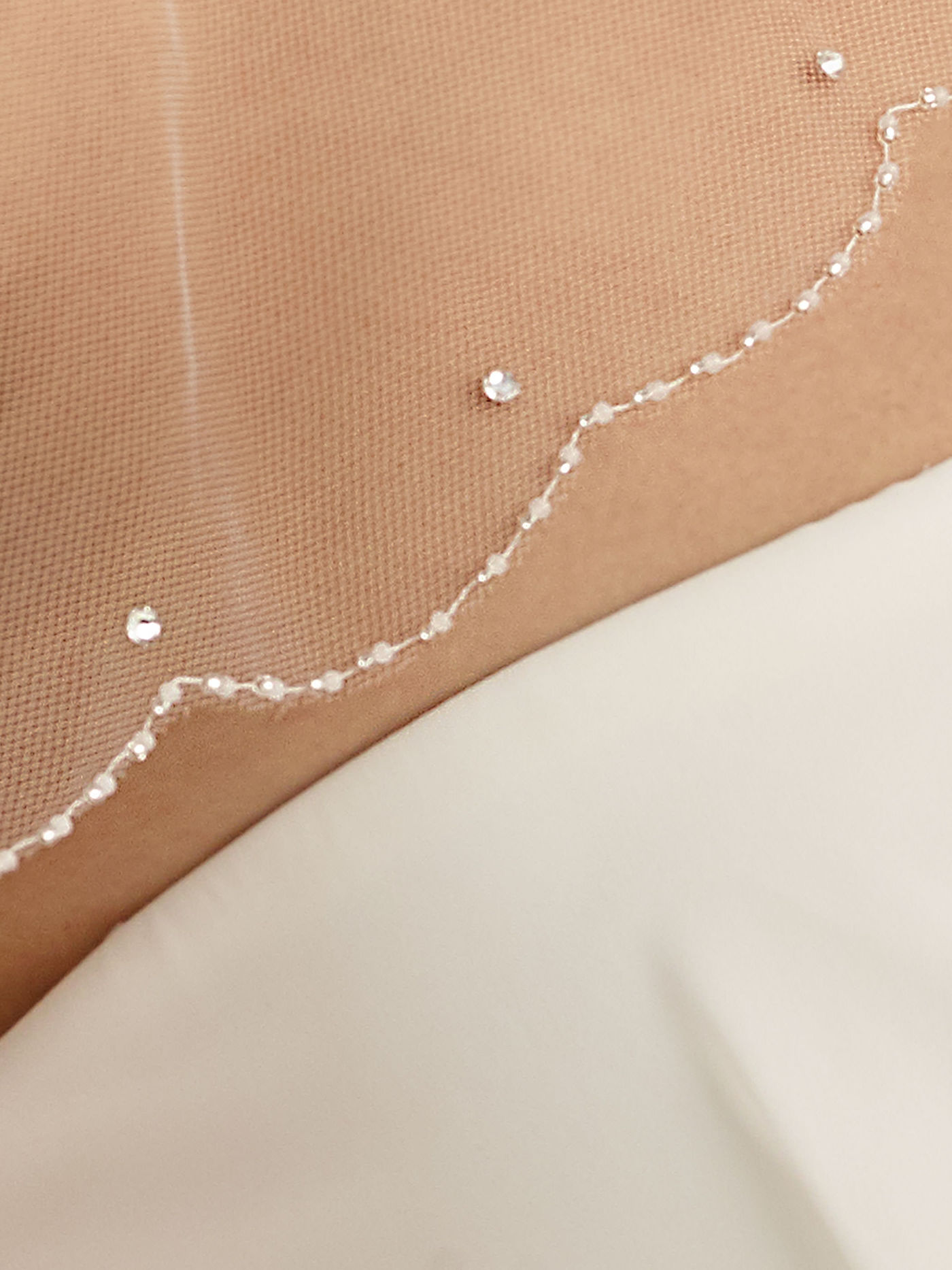 zweilagiger Schleier mit Glasperlen-Kante und Strasssteinen