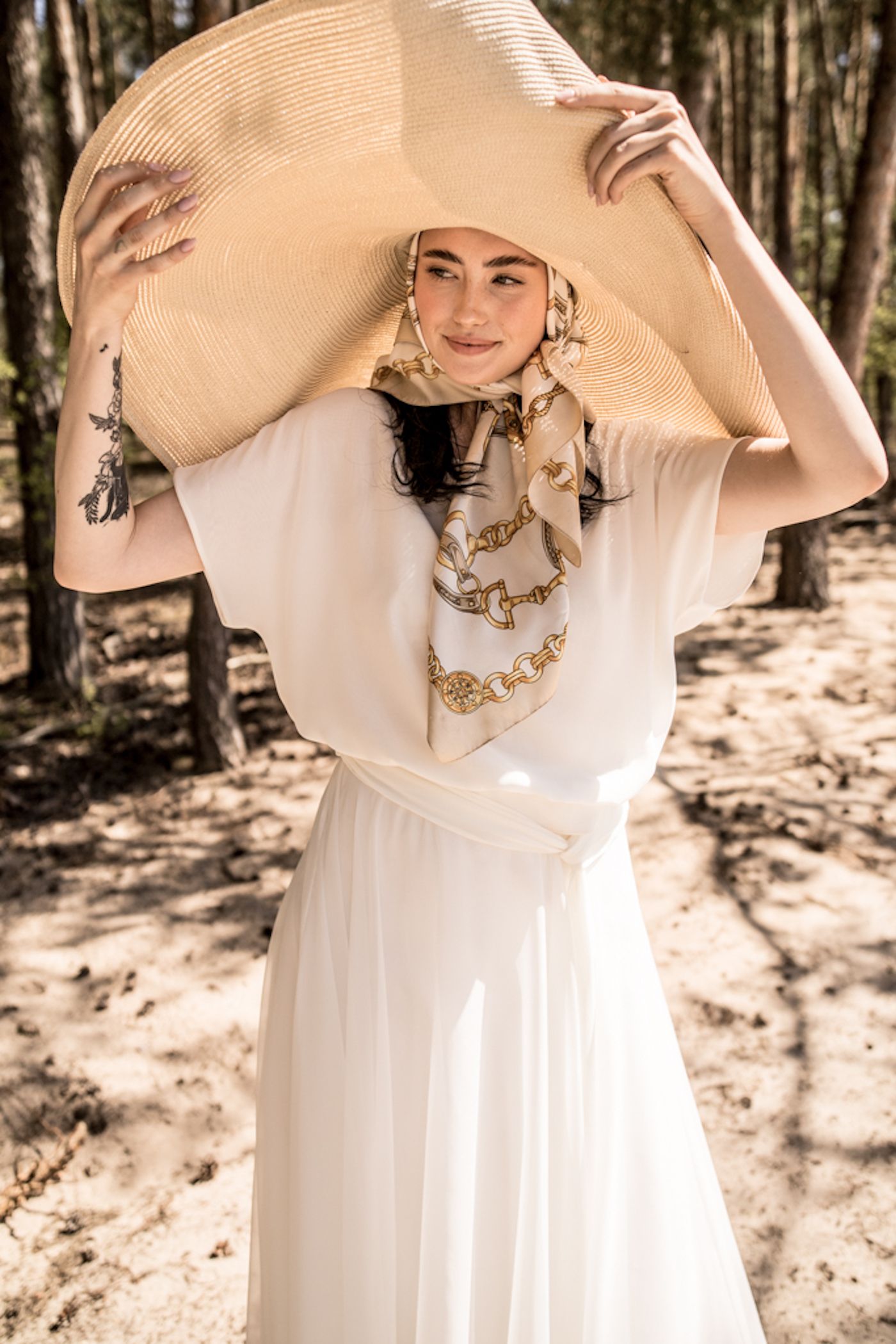 Eine wunderschöne leichte Brautbluse aus Musselin. Leicht und locker zu tragen. Ein Hingucker ist der lange Gürtel/Schal der spielerisch um die Taille gelegt wird.