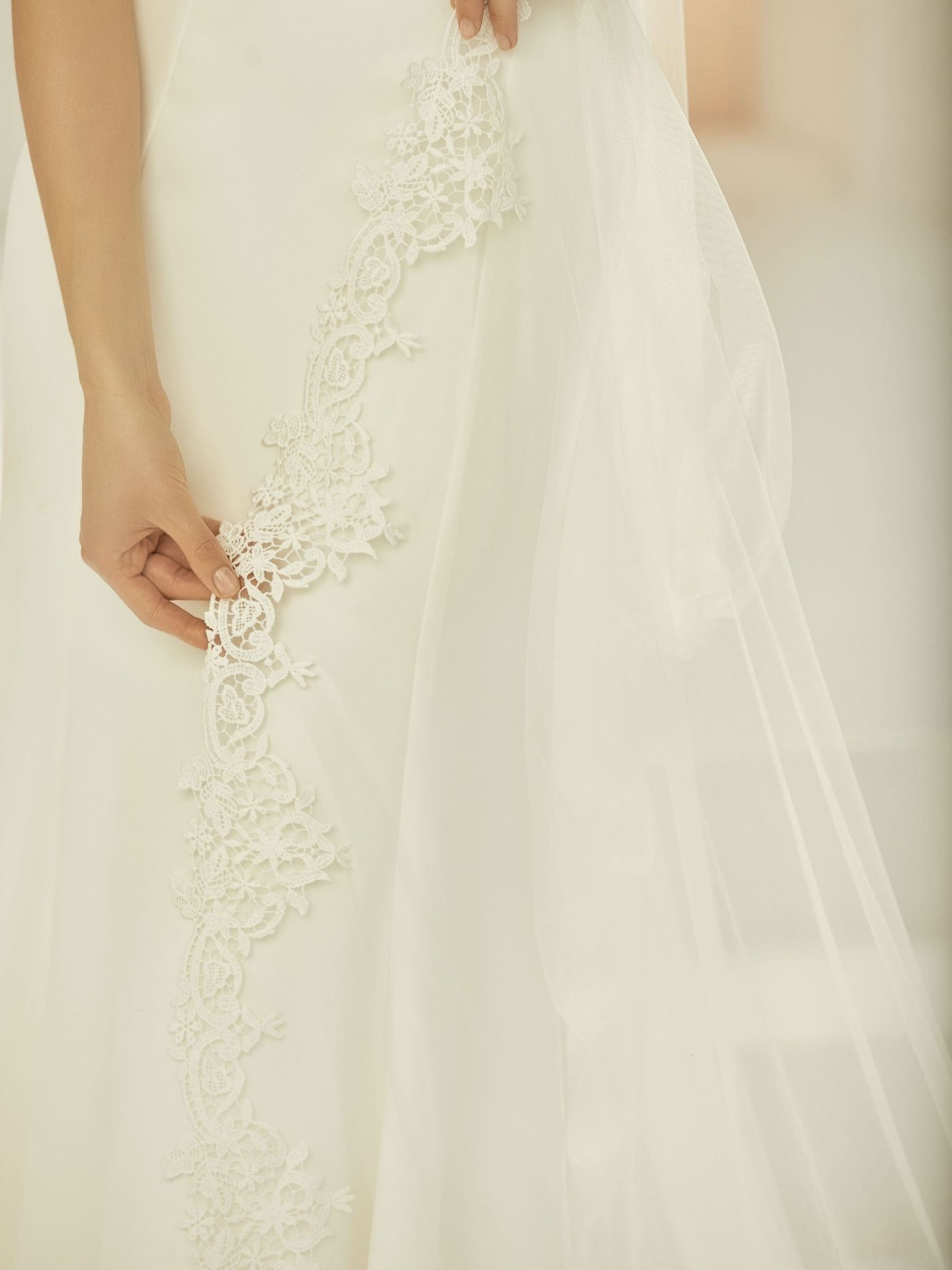 einlagiger Schleier mit Schnitt- und Spitzenkante