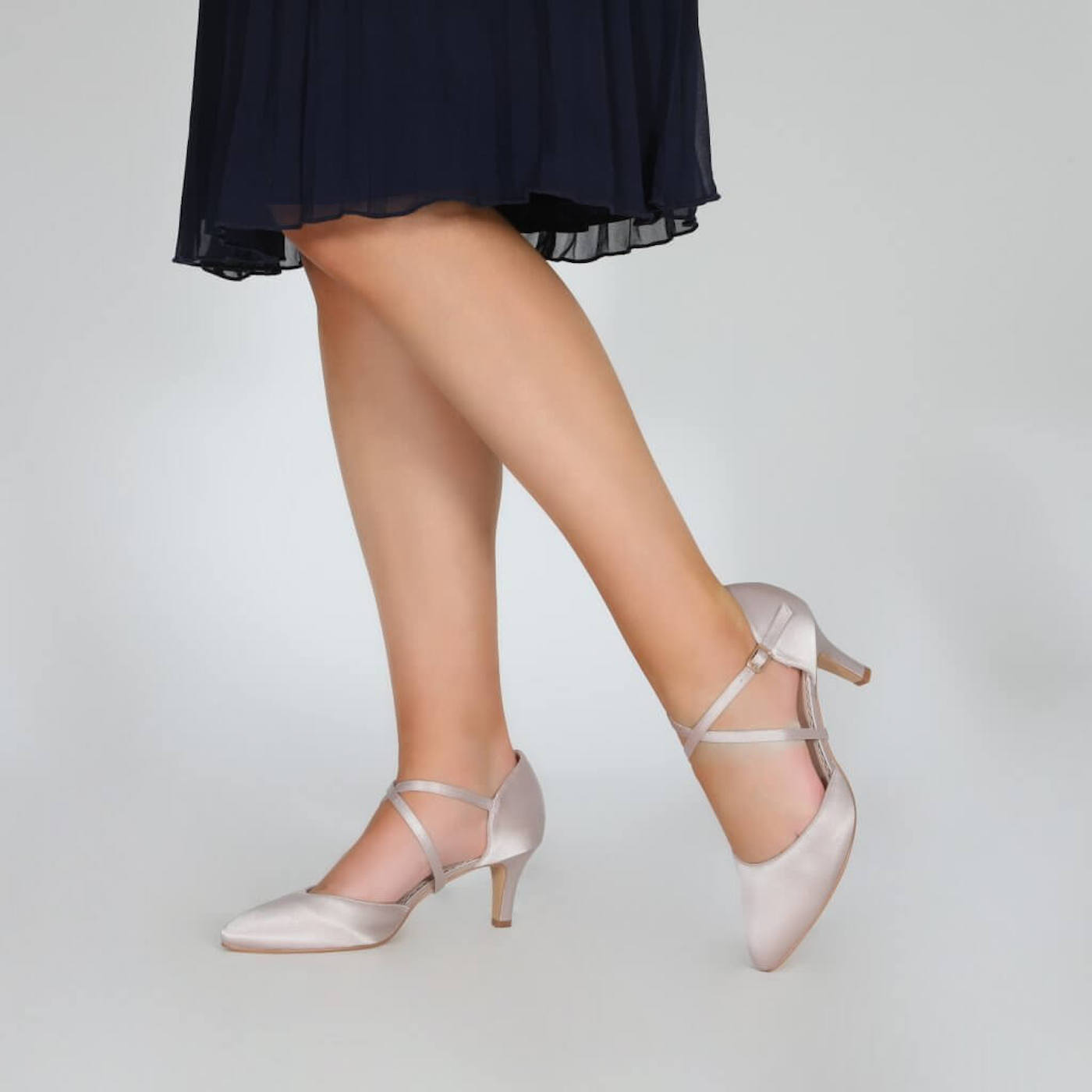 Sonya ist ein klassischer Pumps für die Braut, Brautmutter oder Brautjungfer. Der Schuh ist aus Satin und hat einen schicken Cross-Over-Riemen. Sonya ist auch nach dem Event noch tragbar. Absatzhöhe 67 mm.