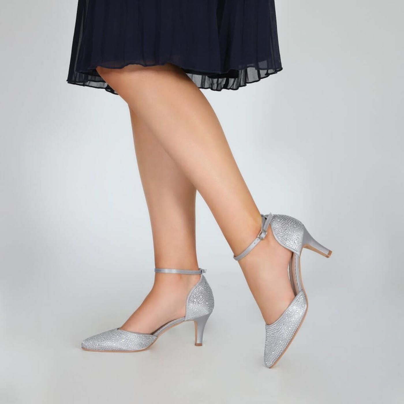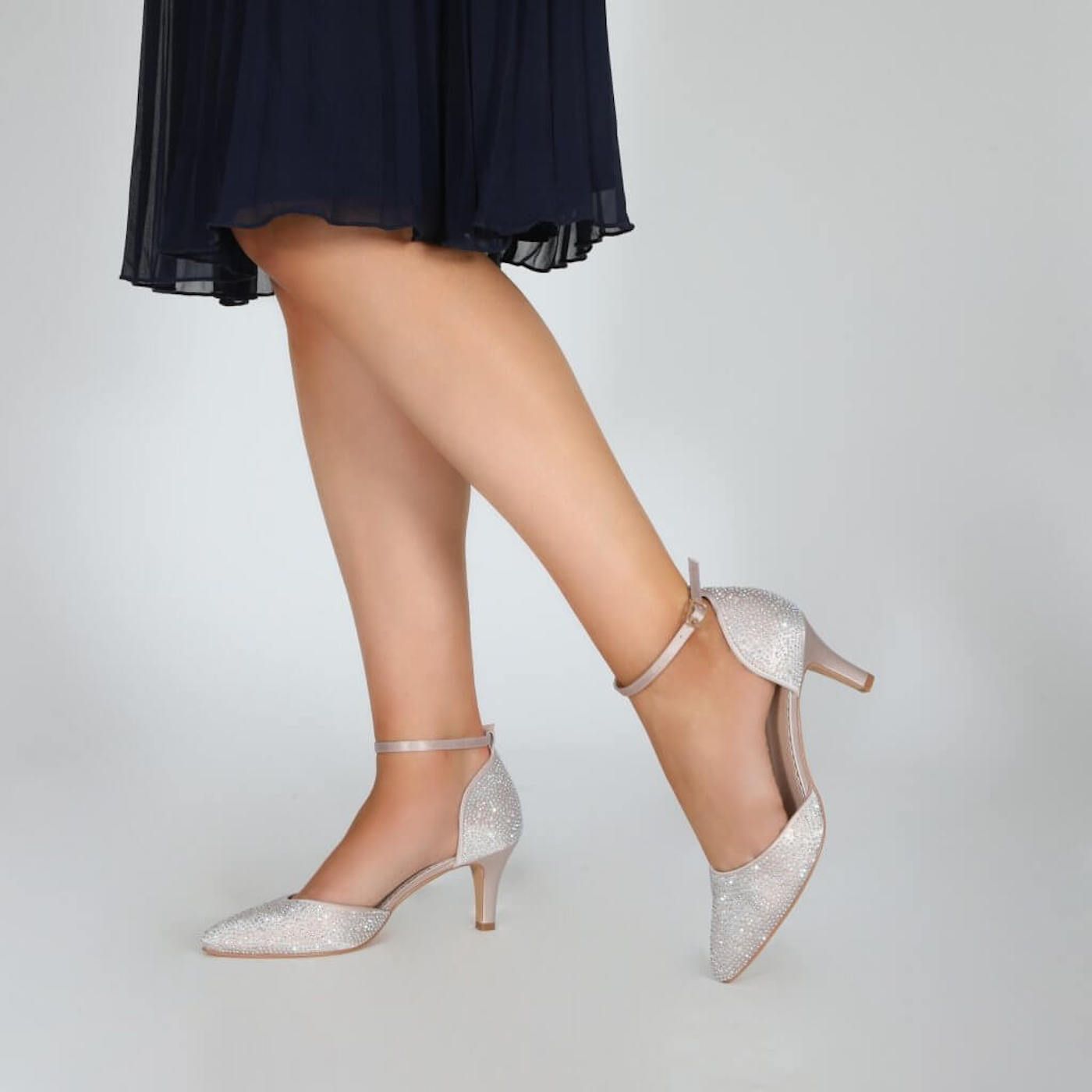 Xena ist ein wunderschöner Pumps mit Knöchelriemen für die Braut, Brautmutter oder Brautjungfer. Ein Highlight sind die Diamantkristalle die den Schuh einfach nur schimmern lassen. Absatzhöhe 67 mm.