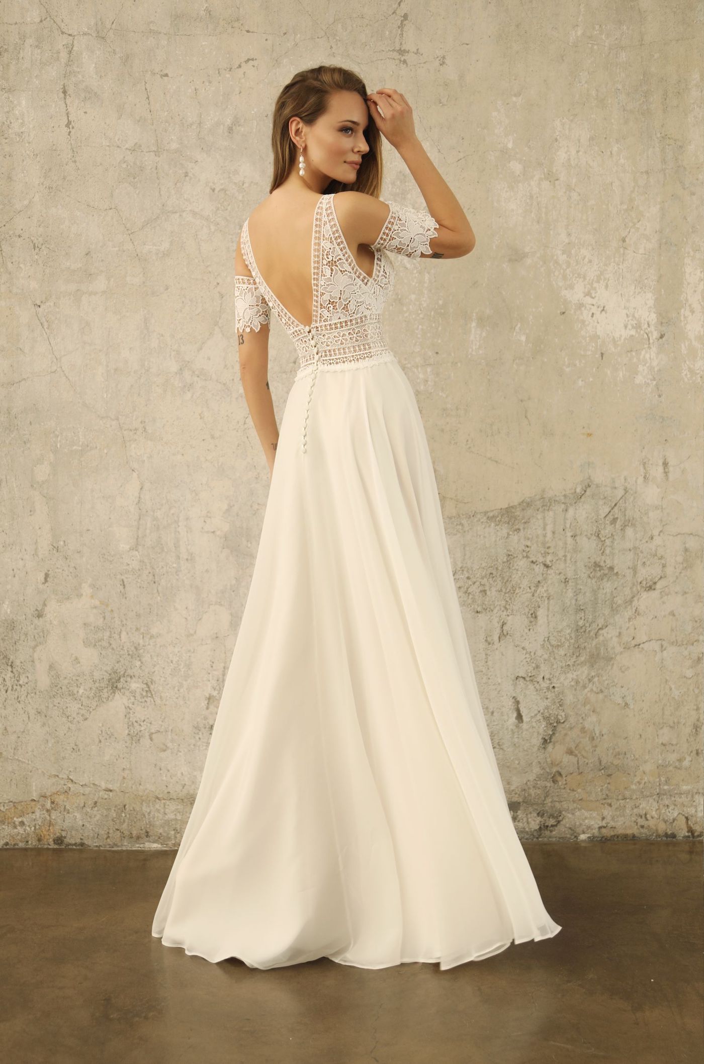 Neu im Atelier: leichtes Boho-Brautkleid. Zart seidiger Chiffonrock mit zauberhafter Bohospitze im Oberteil