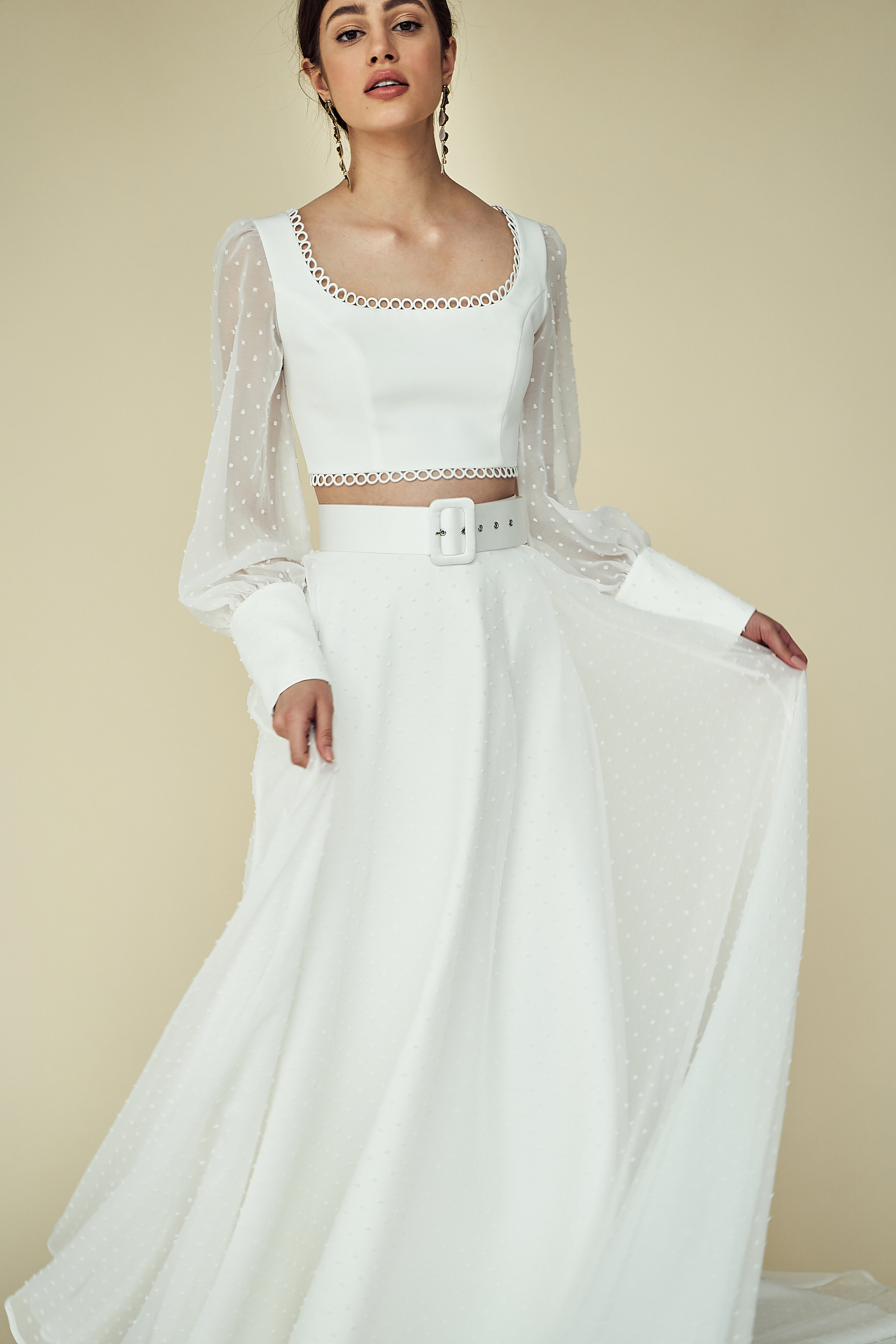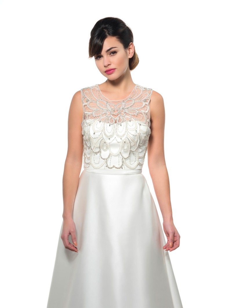 Ein wunderschöner Zweiteiler aus Brautsatin kombiniert mit Pünktchentüll. Ein sehr verspieltes kurz…