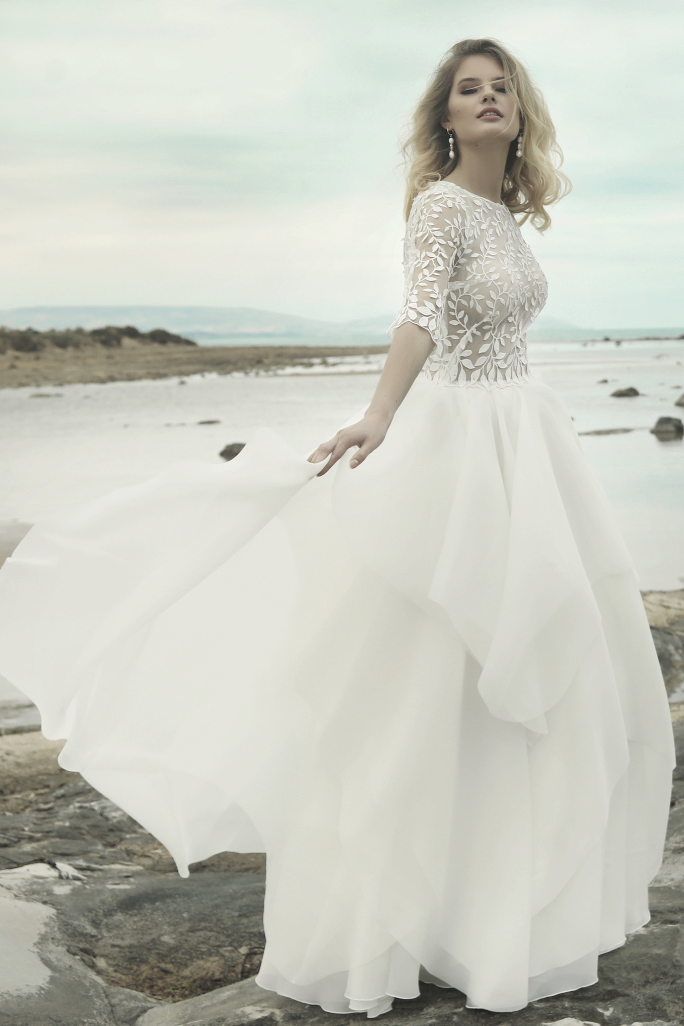 Brautpullover Fledermaus-ärmel und Blumenspitze