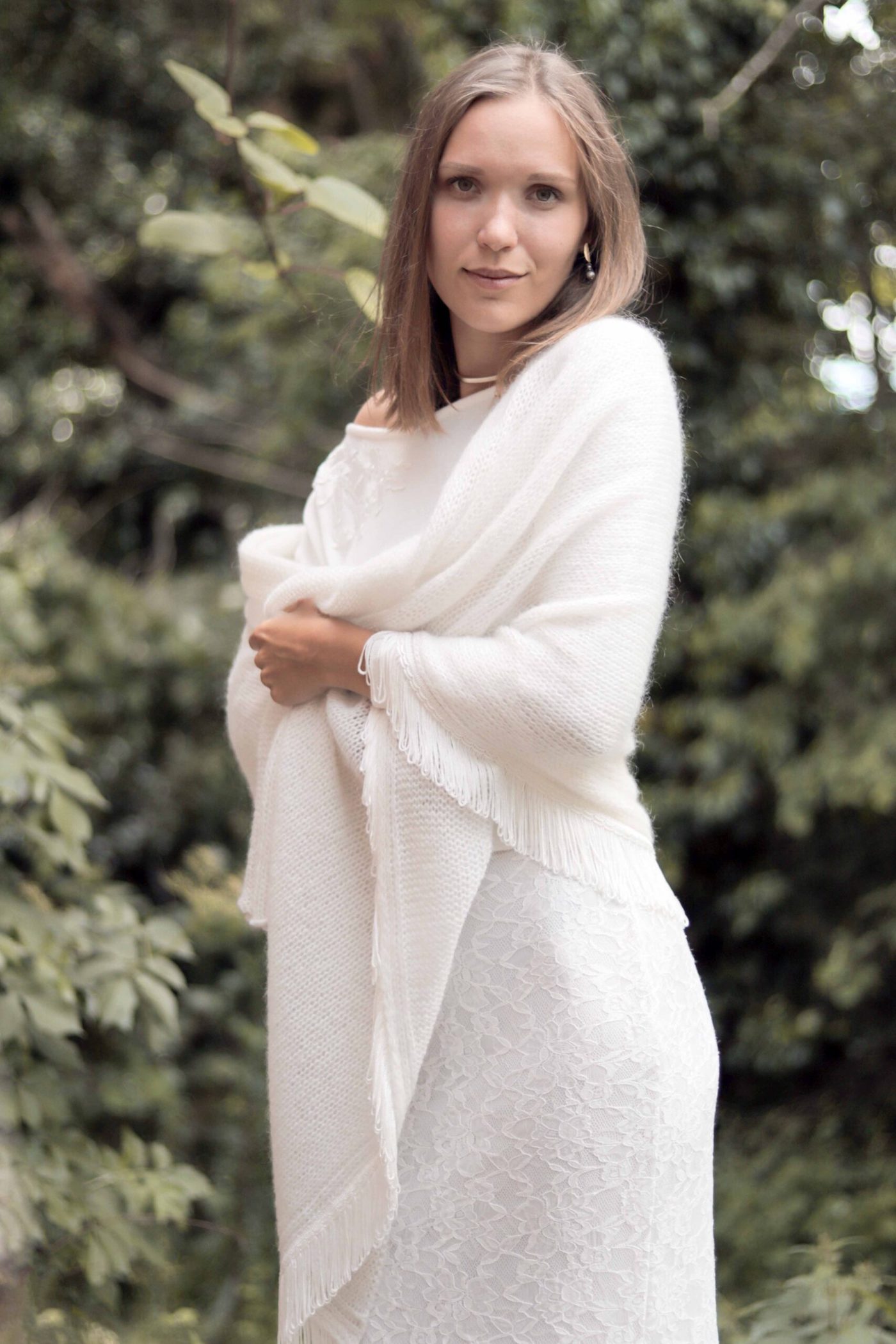 Brautschal aus feiner, lockerer Strickqualität
