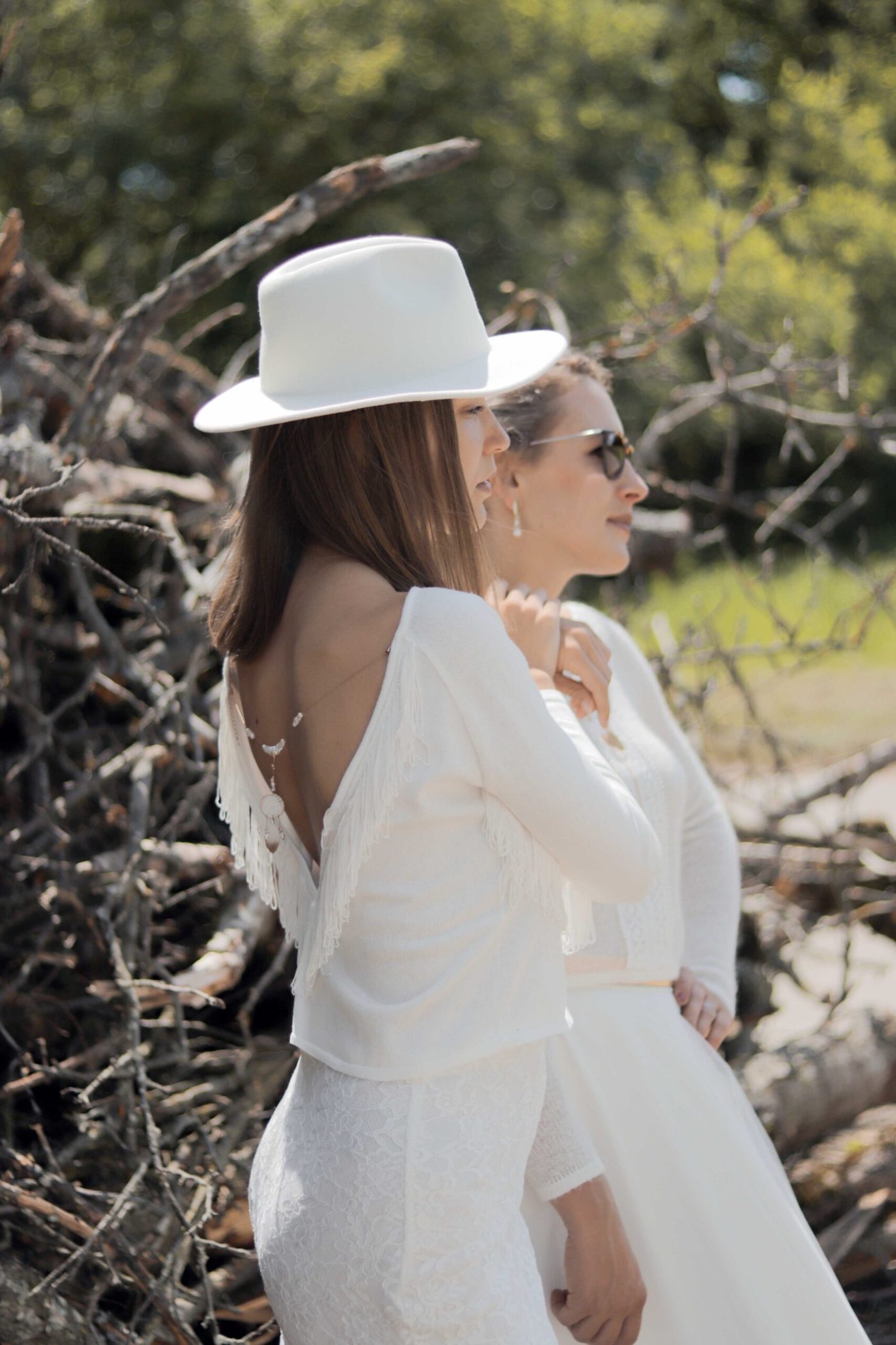 Brautpullover V-Ausschnitt und Fransen