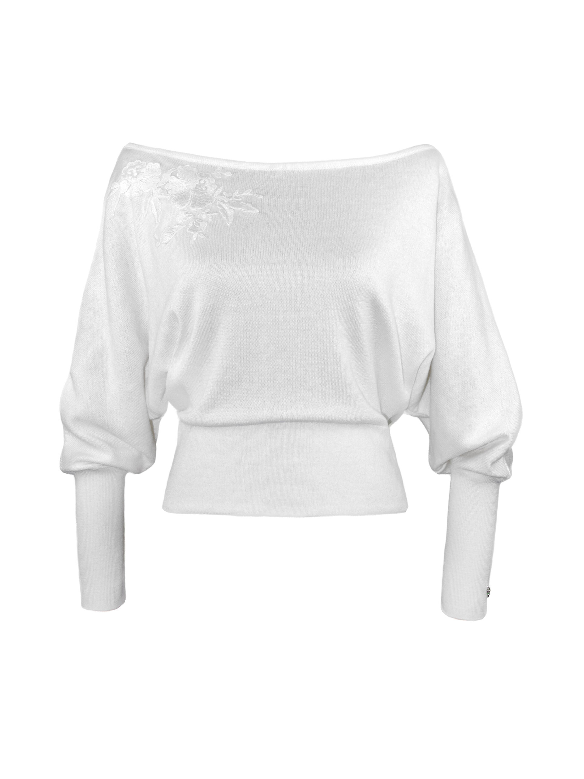 Brautpullover Fledermaus-ärmel und Blumenspitze