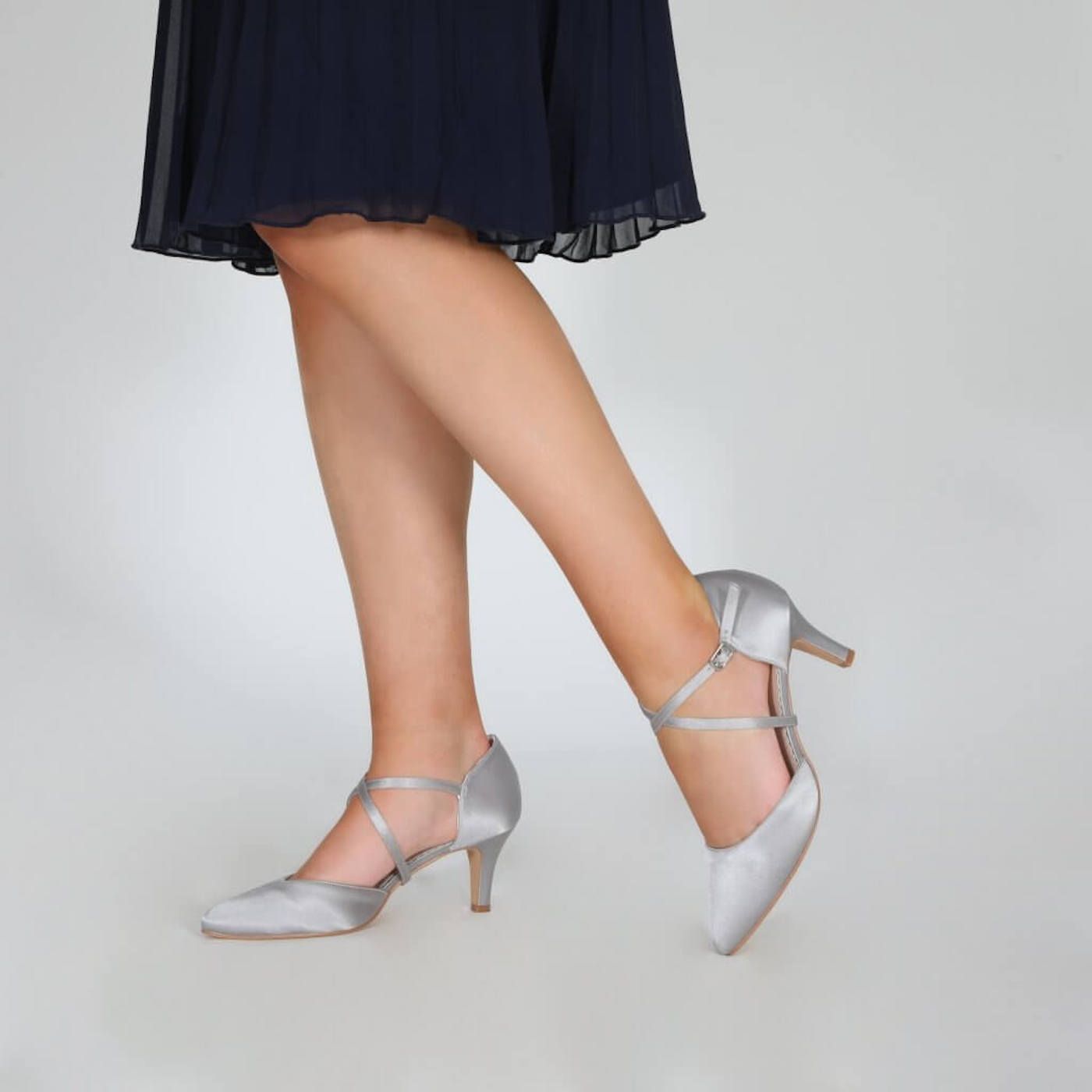 Sonya ist ein klassischer Pumps für die Braut, Brautmutter oder Brautjungfer. Der Schuh ist aus Satin und hat einen schicken Cross-Over-Riemen. Sonya ist auch nach dem Event noch tragbar. Absatzhöhe 67 mm.