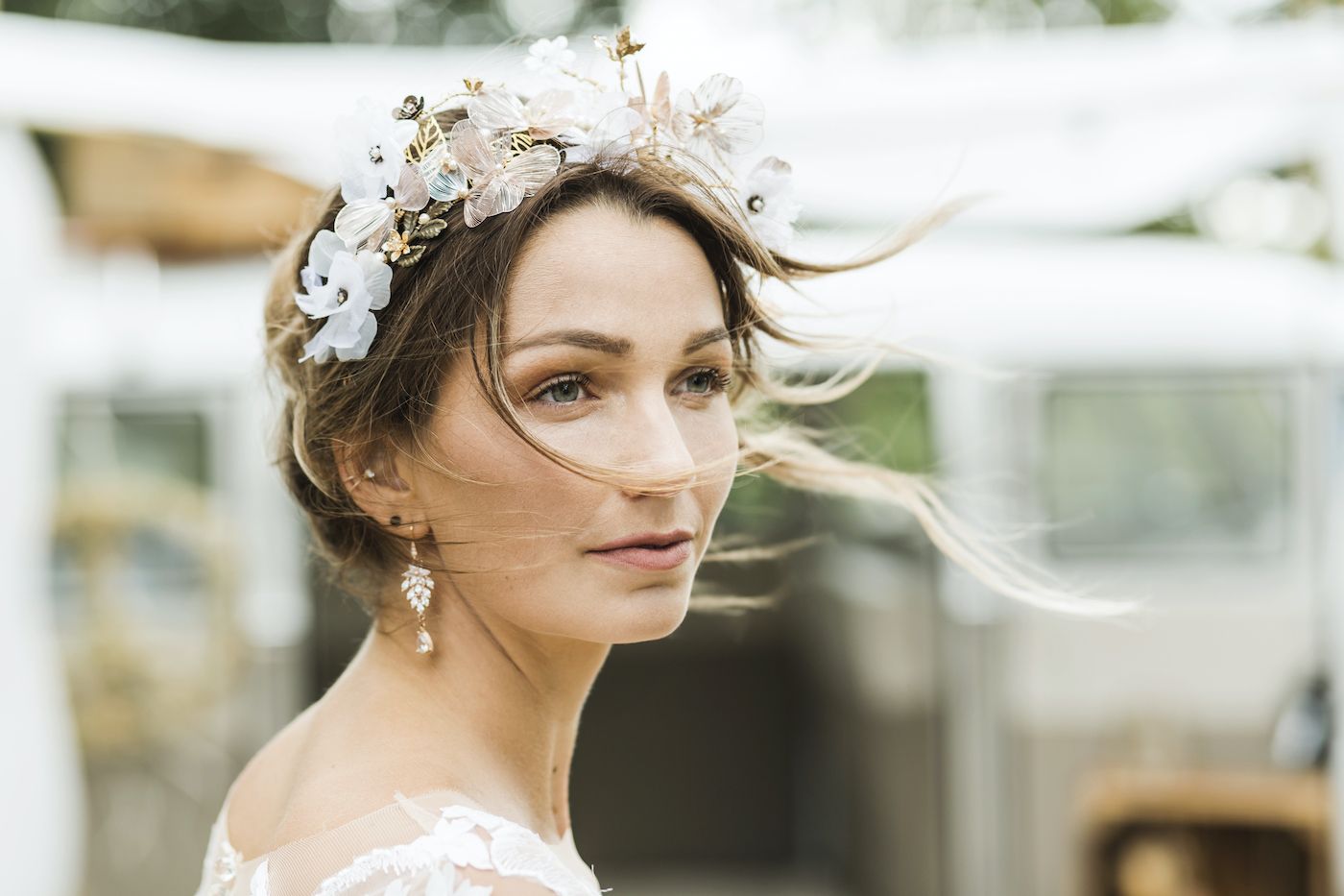 Eigenschaften: eingenähtes Mieder, Spitzen-Verzierungen, 3D-Blüten, Federn, lange Ärmel, Tüll-Rock, Rock mit Verzierungen, mit Schleppe