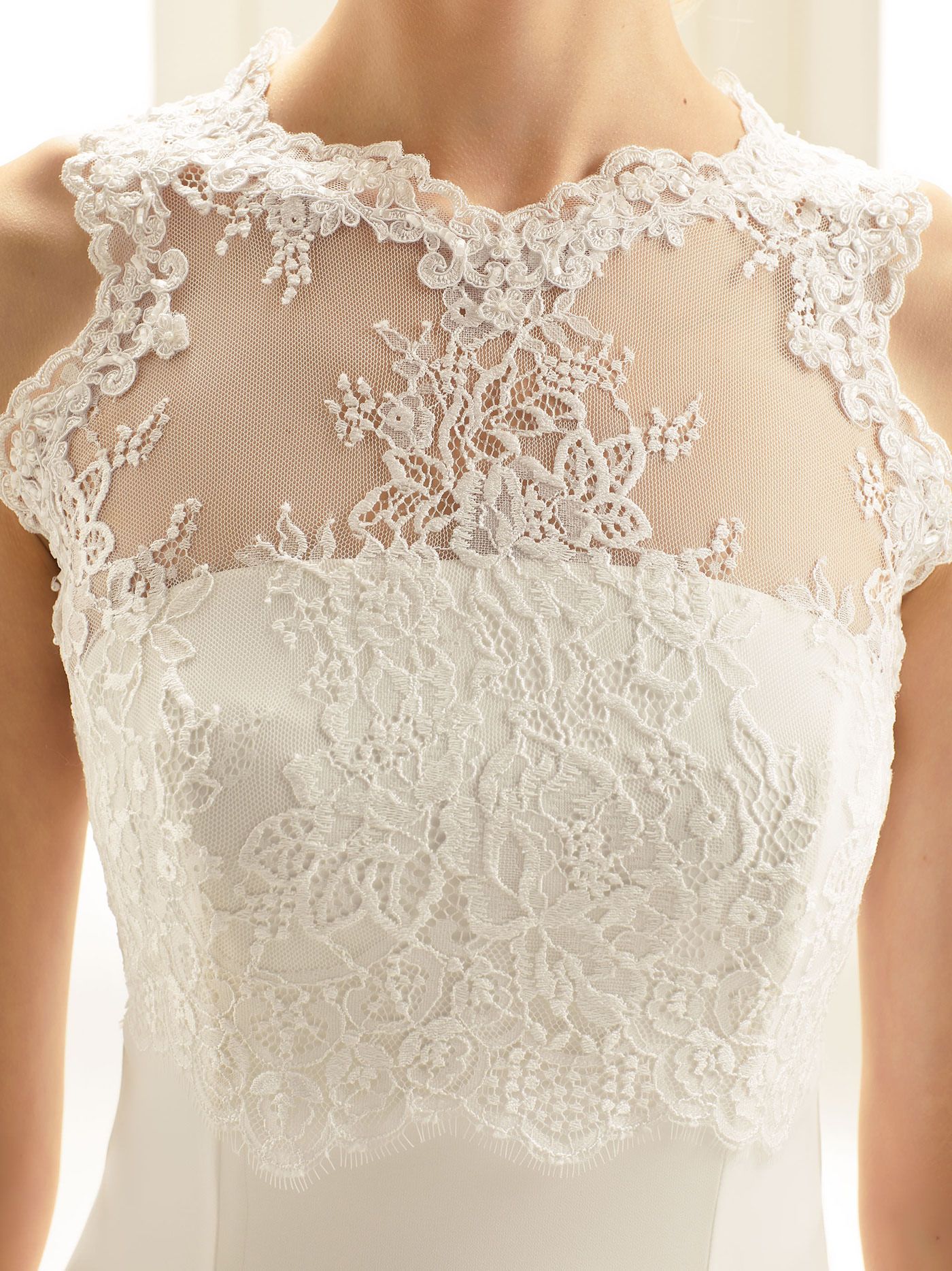 Dieser Bolero wertet die meisten unserer Basic-Brautkleider auf. Aus einem schlichten Basic-Brautkleid wird ein wunderschönes Spitzenbrautkleid gezaubert.